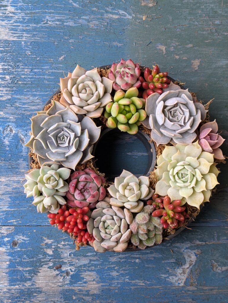 ハウスの中の多肉を自由に組み合わせて、オリジナルのリースがつくれます😊